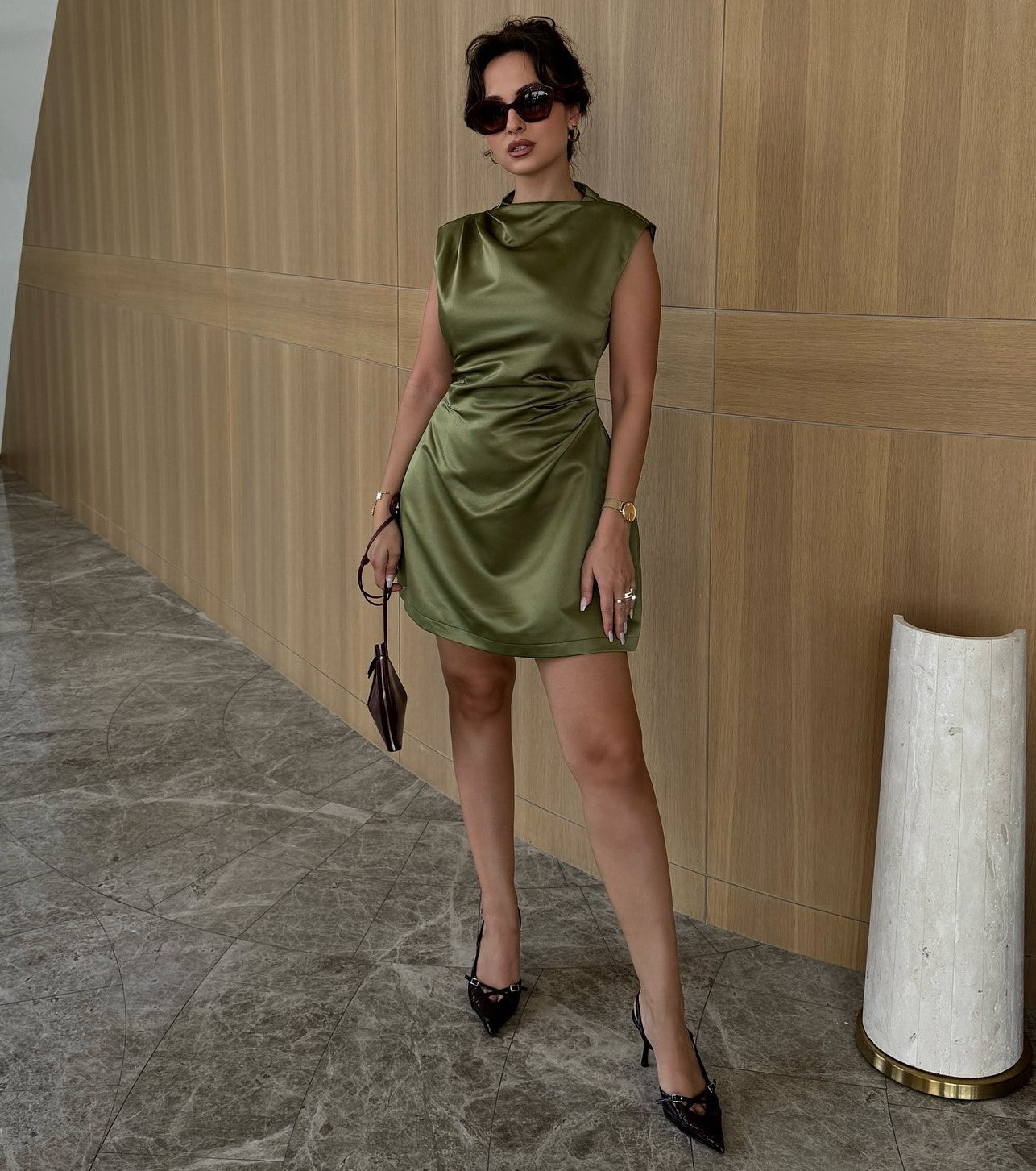 Meet the mini dress that does it all — and looks amazing doing it! This satin beauty brings an effortless glow thanks to its subtle sheen and smooth fabric. The sleeveless cut and straight neckline keep things clean and chic, while the gentle waist gathering adds just the right amount of flirt.